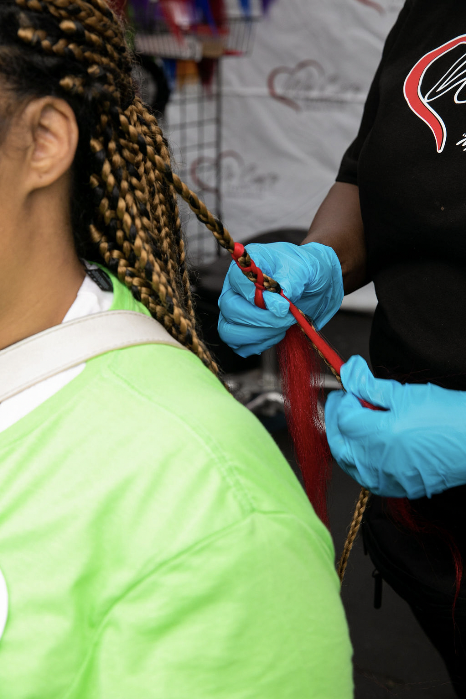 Our team provides athletes and their families with a welcoming space to relax, connect, and celebrate self-care. Participants can choose fun hairstyles, colorful braids, and grooming services that help them look and feel their best.